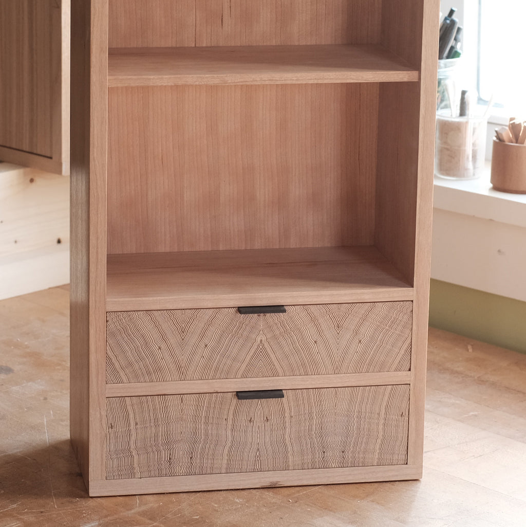 These are front and side drawings with dimensions for my small wall cabinet with end grain veneers. Please note that they are not a set of comprehensive plans with step-by-step instructions, advice, etc. They are meant to be used in conjunction with the live-streamed course I taught in 2020. That course is now available for free on YouTube.